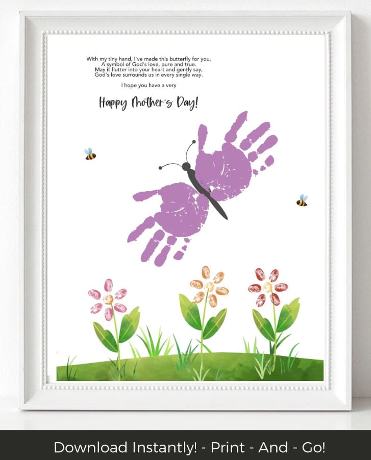 Butterflies are a sign of life and rebirth – a perfect symbol for moms! This adorable handprint craft includes a poem to melt her heart!