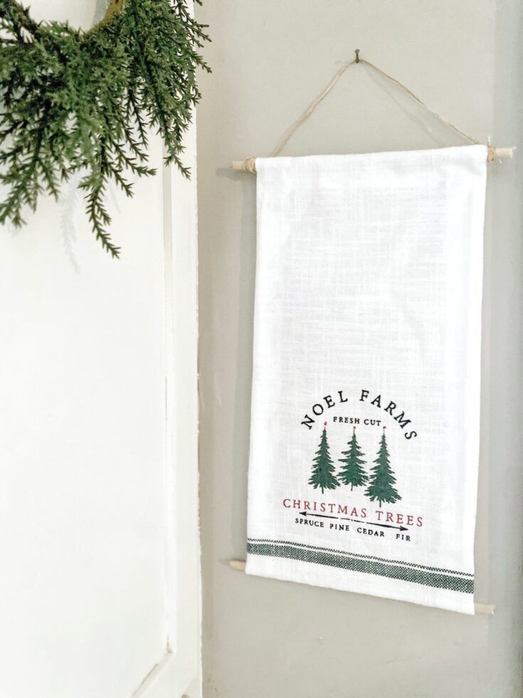 This is such an easy craft that you can make from a Christmas themed kitchen towel! I've made several versions of this and they are so fun!