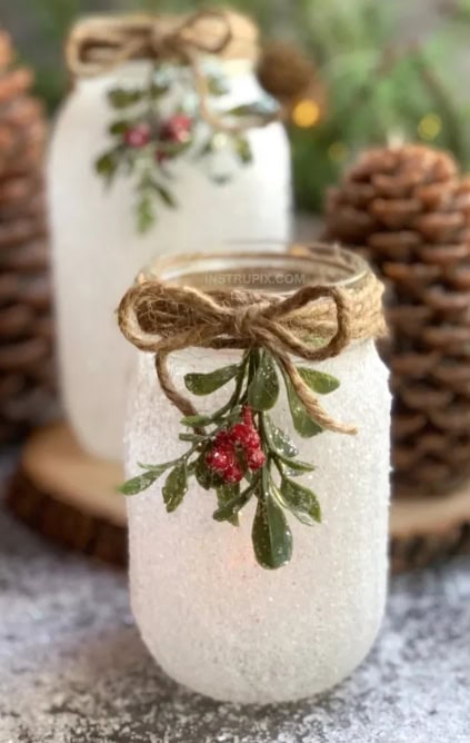 DIY Christmas Craft: Snowy Mason Jar Tea Light Holders