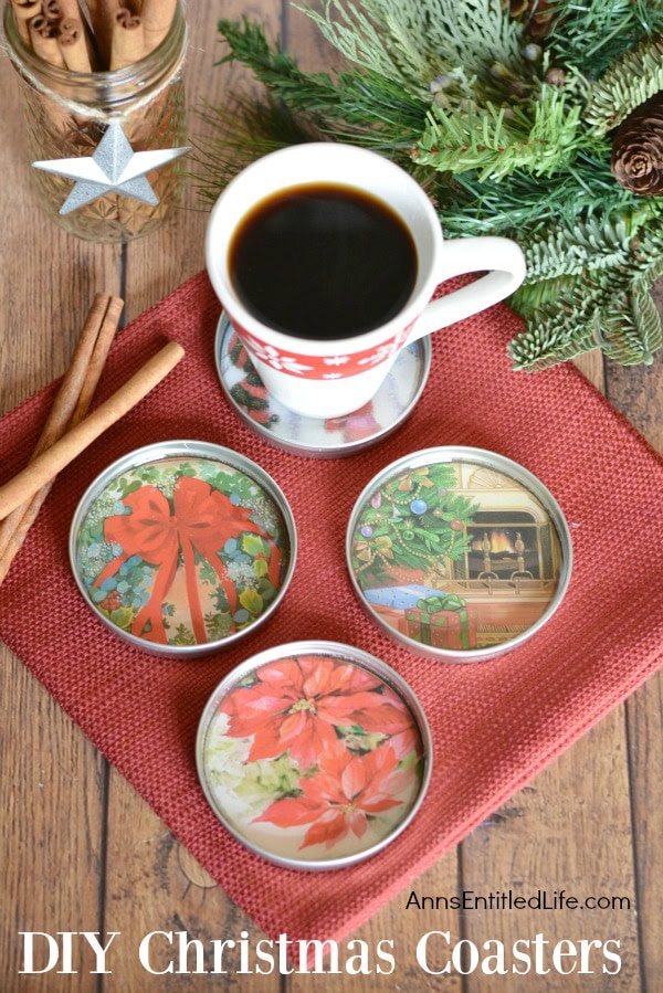I love this idea for Christmas coasters! You can use old cards, scrapbook paper - anything you can Mod Podge will work great!