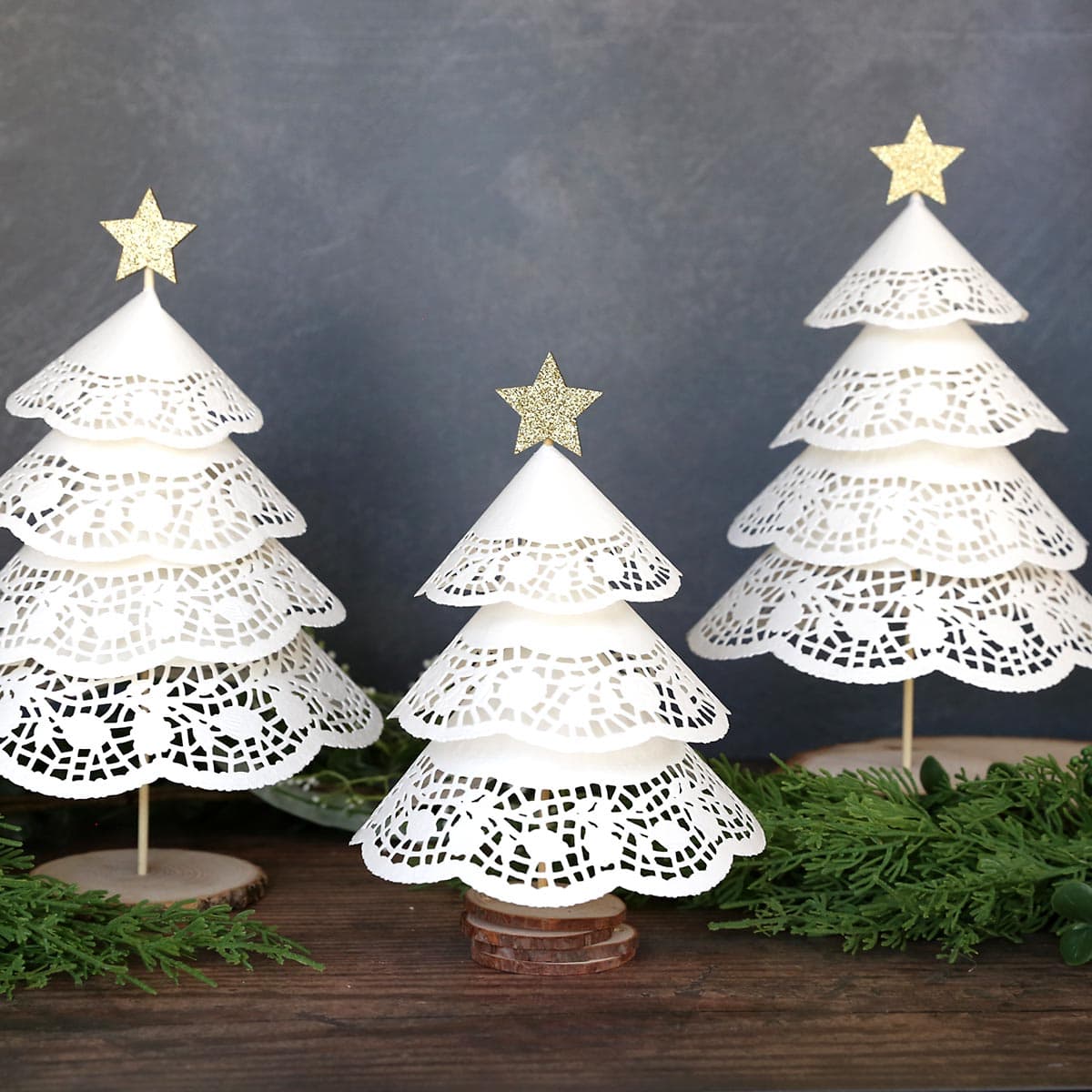 How sweet are these Christmas trees? They add a nostalgic, cottage touch to Christmas decor with all the love of an old-fashioned handmade craft. Try these in gold or Christmas colored doililies, too!