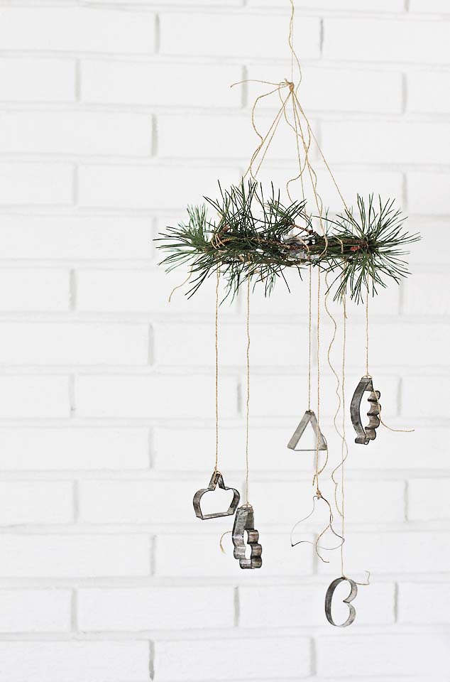 I love this idea! It's charming, minimalist, but so creative! A wreath form with greens, and cookie cutters hung with twine. Sooo gorgeous.